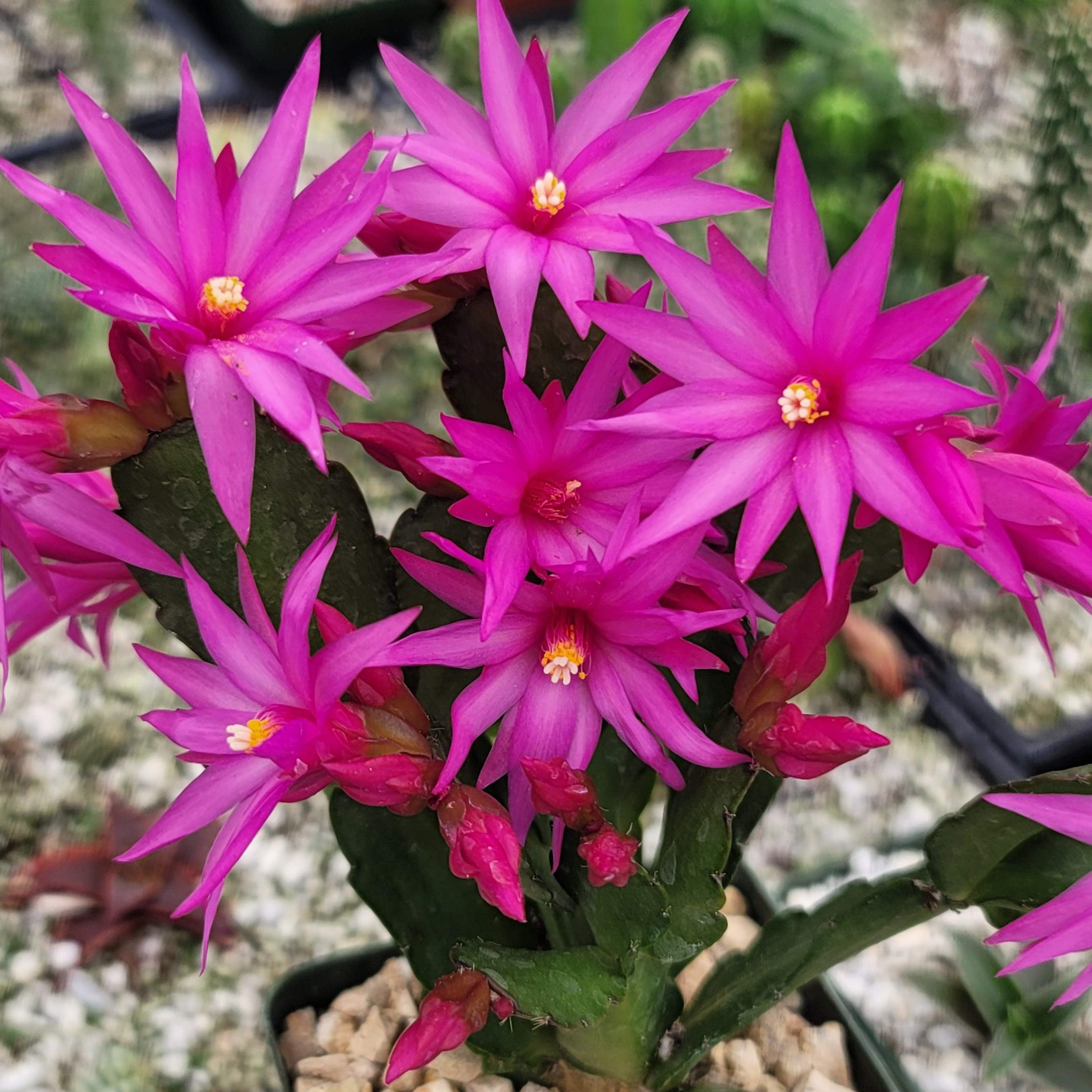 The Real Easter Cacti are rare because growers typically sell , which are easier to manipulate to bloom during popular holidays like and Easter. By adjusting light exposure, growers can make the Thanksgiving Cactus bloom for these key holiday seasons, making them more marketable. In contrast, the true Easter Cactus naturally blooms in spring, has distinctive star-shaped flowers, and requires more specialized care, making it less common and harder to find in stores.