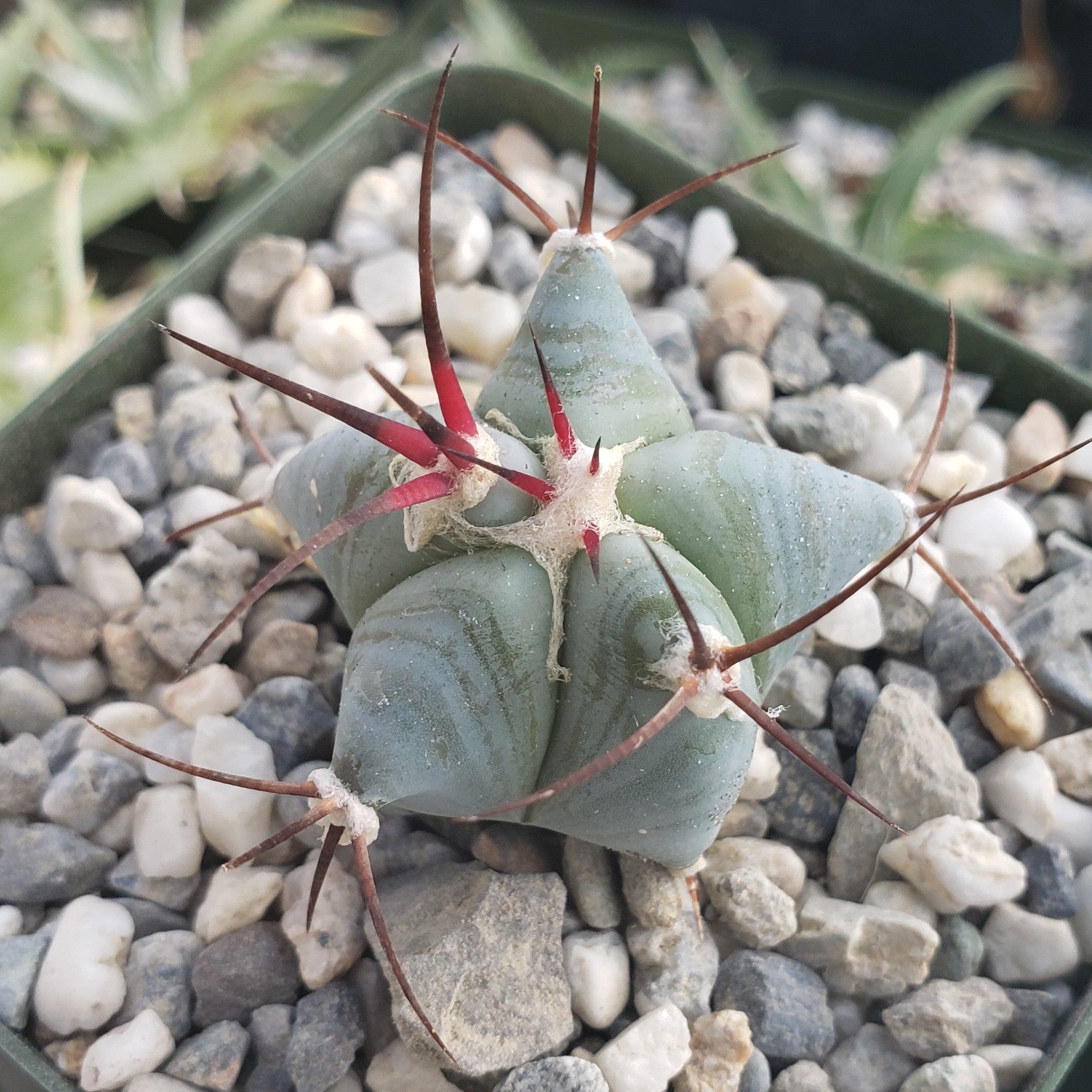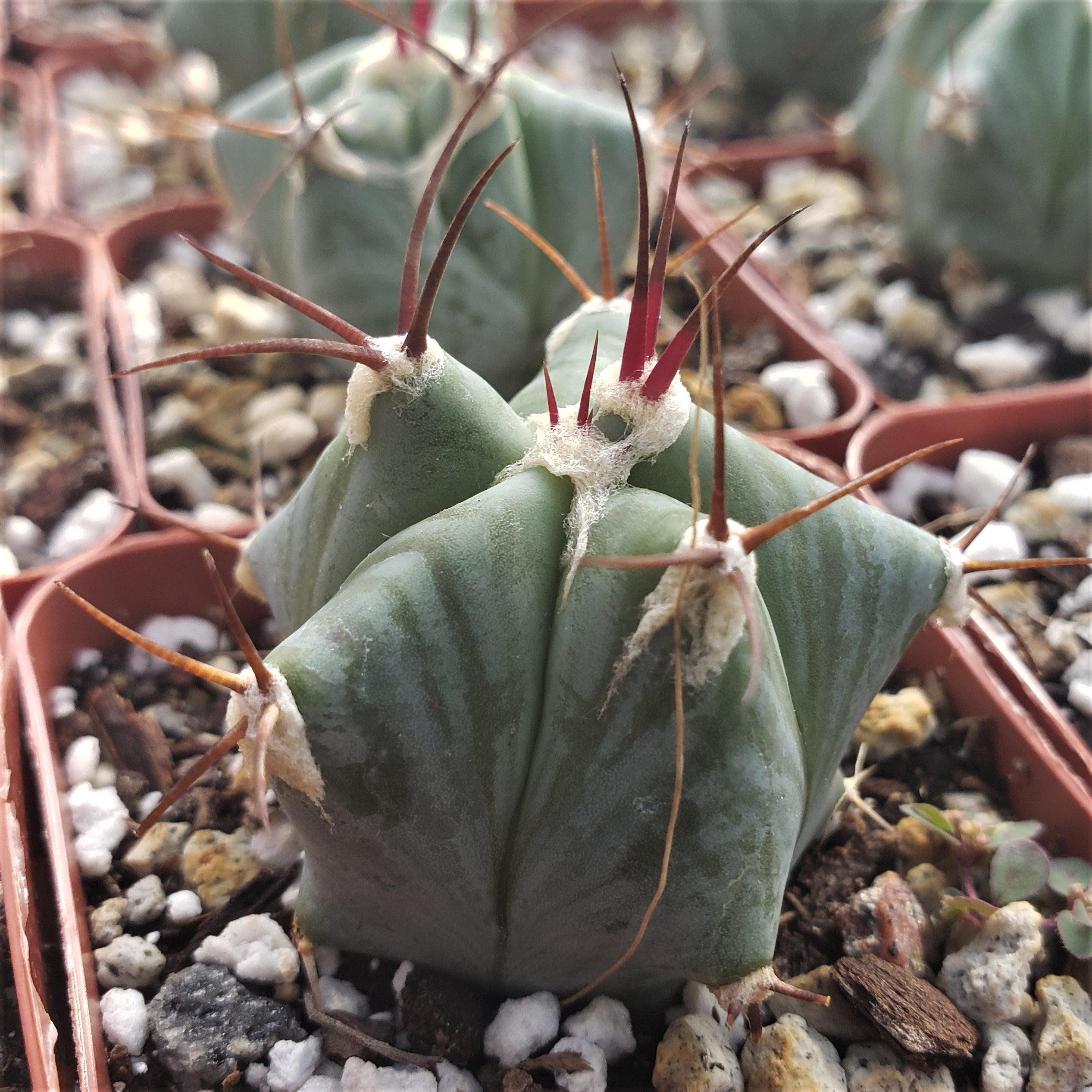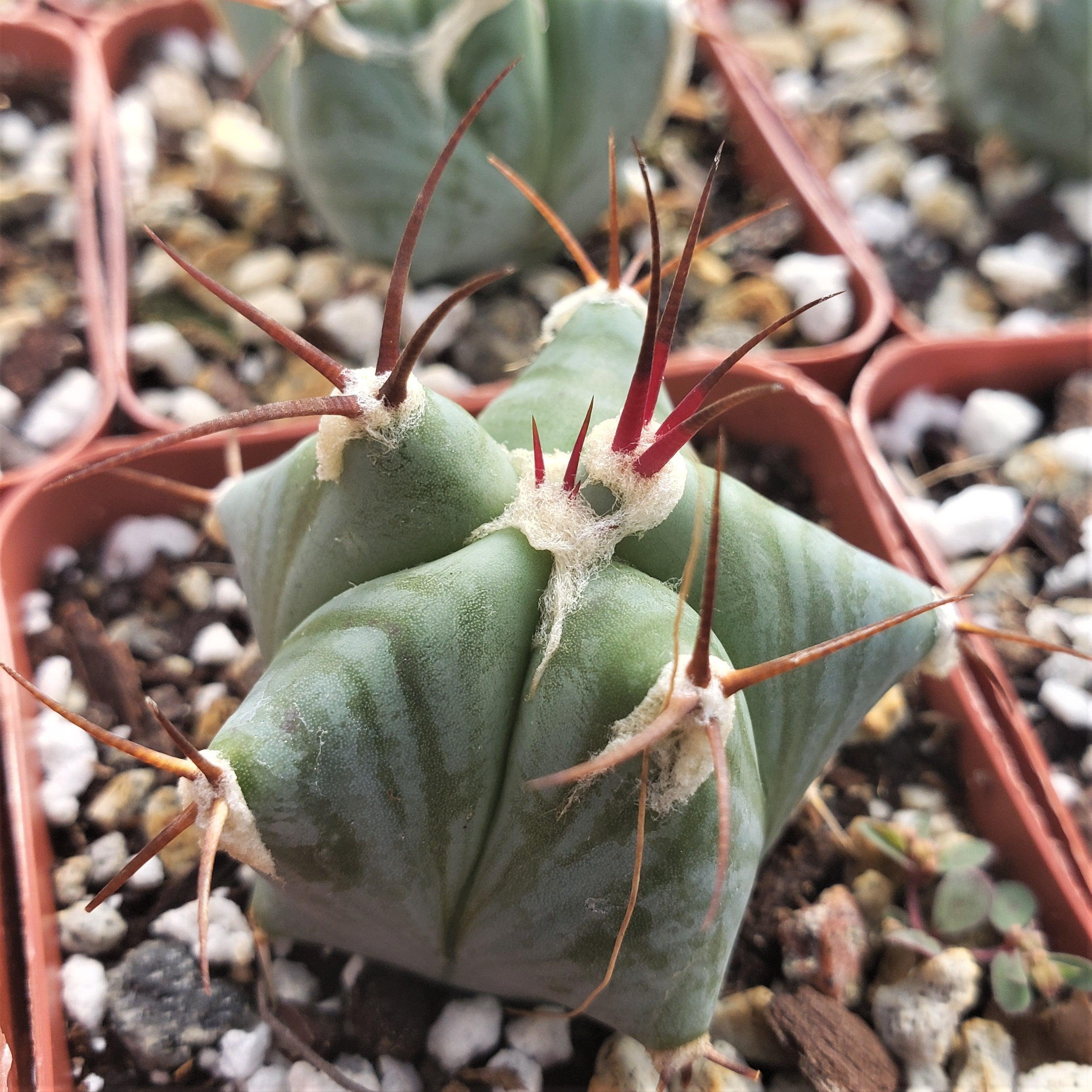 Cultivation and propagation: Frost tender but resistant to -4°C for short periods. Cold hardiness increases with improved drainage, so keep plants as dry as possible in winter. They grow best in well-drained soil and a position in full sun, which will help to maintain the luster of the spines and longevity of the flowers. Provide the plant with extremely well-drained soils, as the plant are subject to crown and soft rot if it remains too moist.