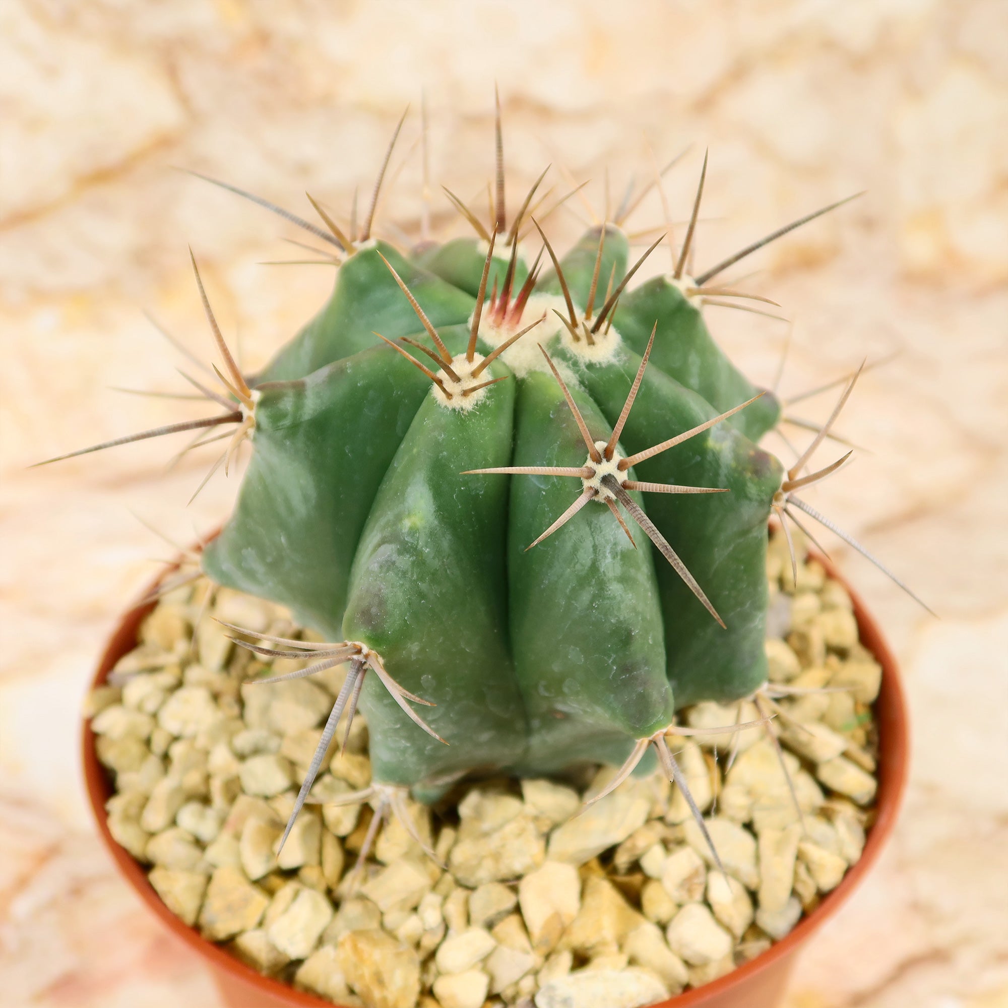 It is a slowly growing massive barrel cactus usually solitary that grows huge in habitat (up to 2.5 m tall, 1.5 m wide). It could live more than a hundred years. This cactus is easily recognized by it's large size, being the largest of all barrel cacti.