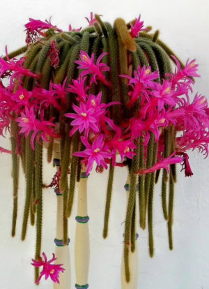 Overall, the rat tail cactus (Aporocactus flagelliformis) is a captivating plant that has gained popularity as a hanging succulent. Its unique rat tail-like stems and vibrant blooms make it a favorite among plant enthusiasts. Taking care of this cactus is relatively easy, as it thrives in and requires moderate watering. It prefers bright, indirect light but can handle some shade. The rat tail cactus plants prefer warm indoor temperatures between 60°F to 80°F, outdoor USDA zone 10-11. With its trailing growth habit, it looks stunning in hanging baskets or cascading down shelves. Whether you're a seasoned plant lover or a beginner, the rat tail cactus for sale is sure to add a touch of beauty and charm to your indoor or outdoor space.