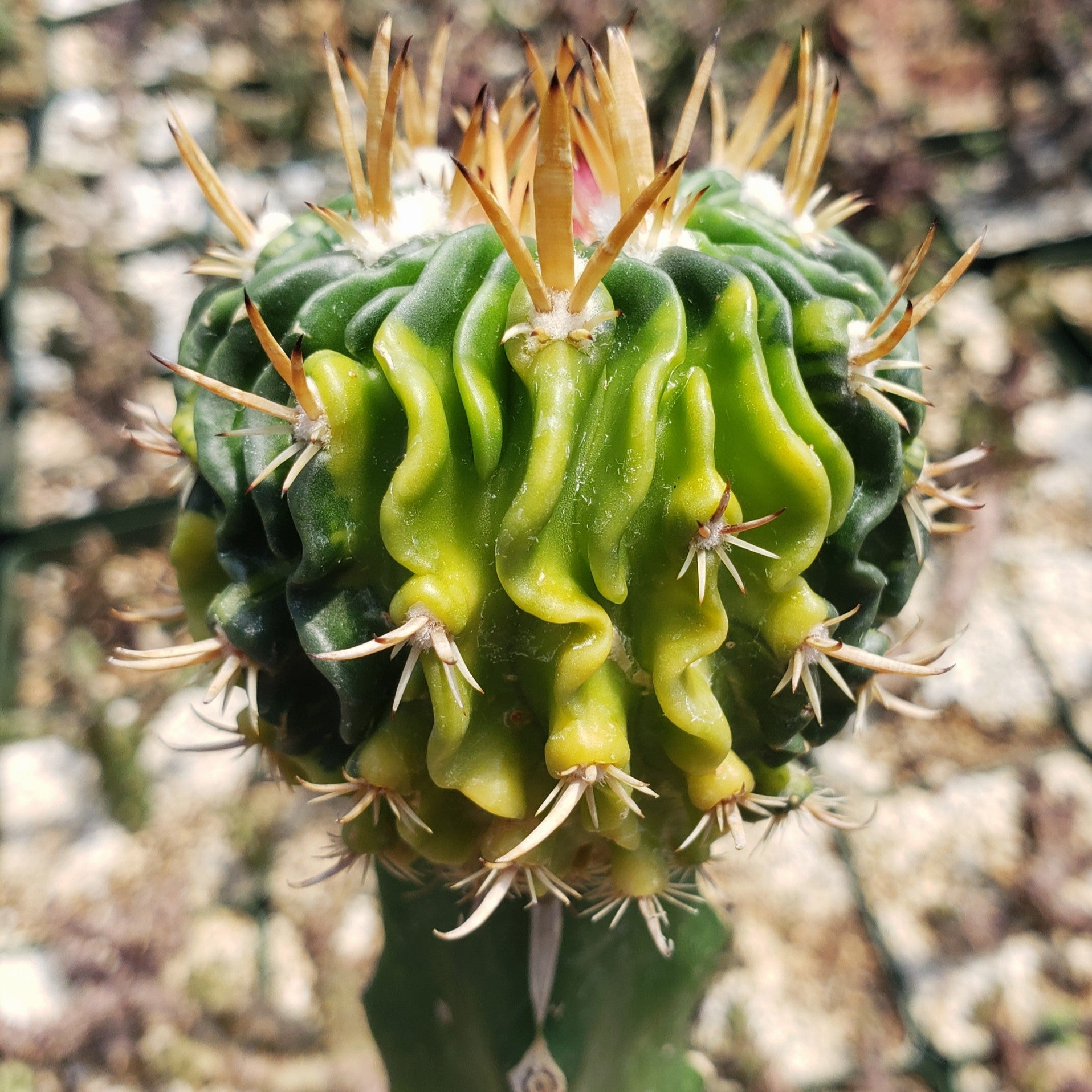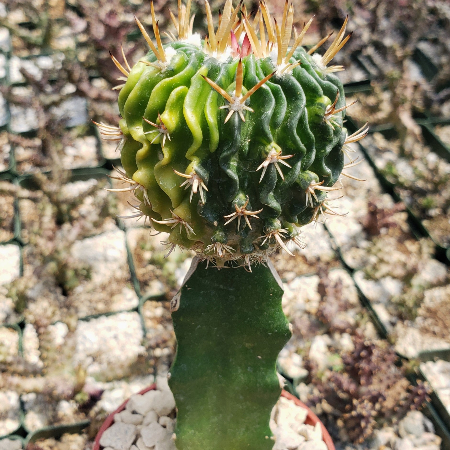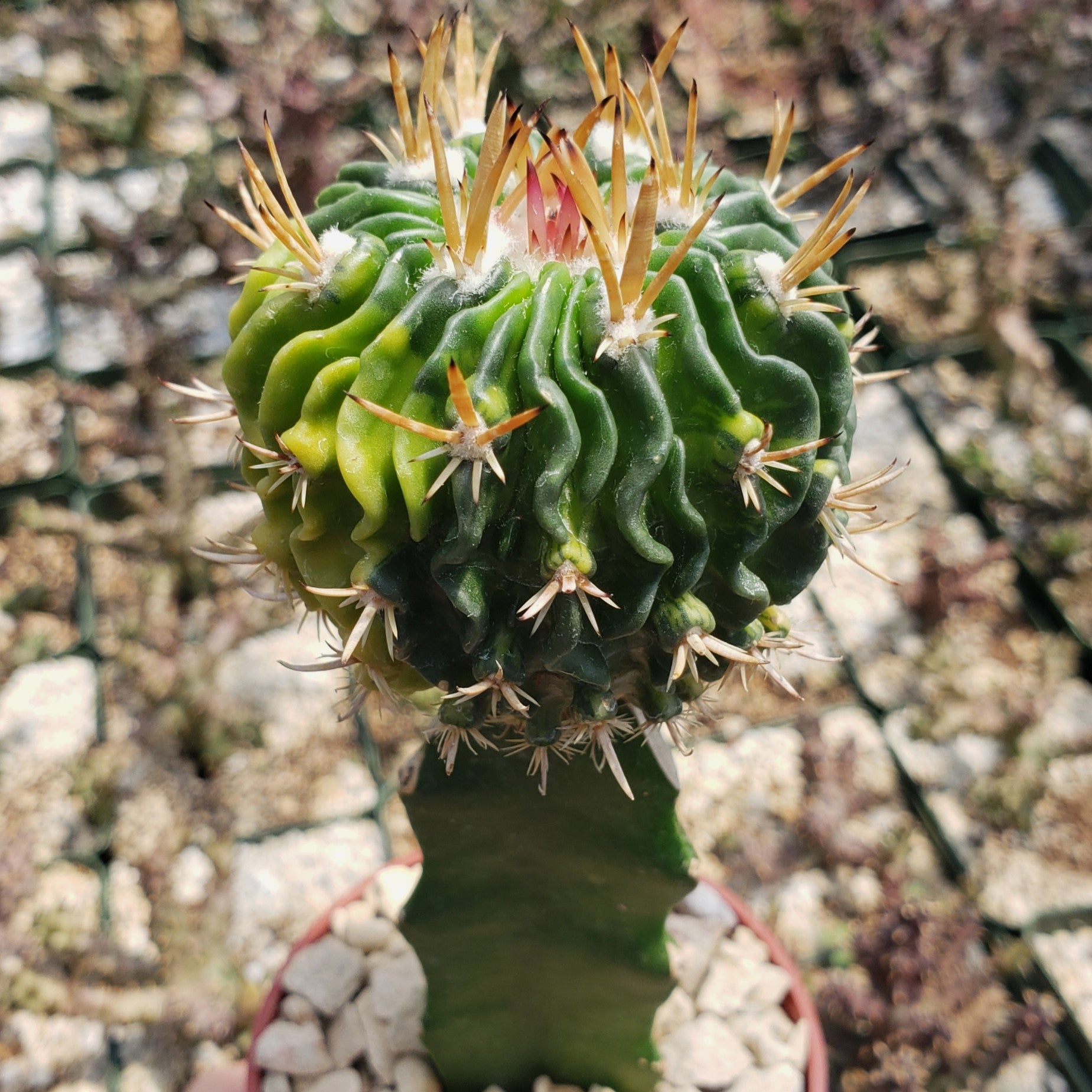 Echinofossulocactus guerraianus variegata crested grafted plant will revive your space while getting you words of praise from your neighbors and family members. Its gorgeous flowers are instant attention-catchers.
