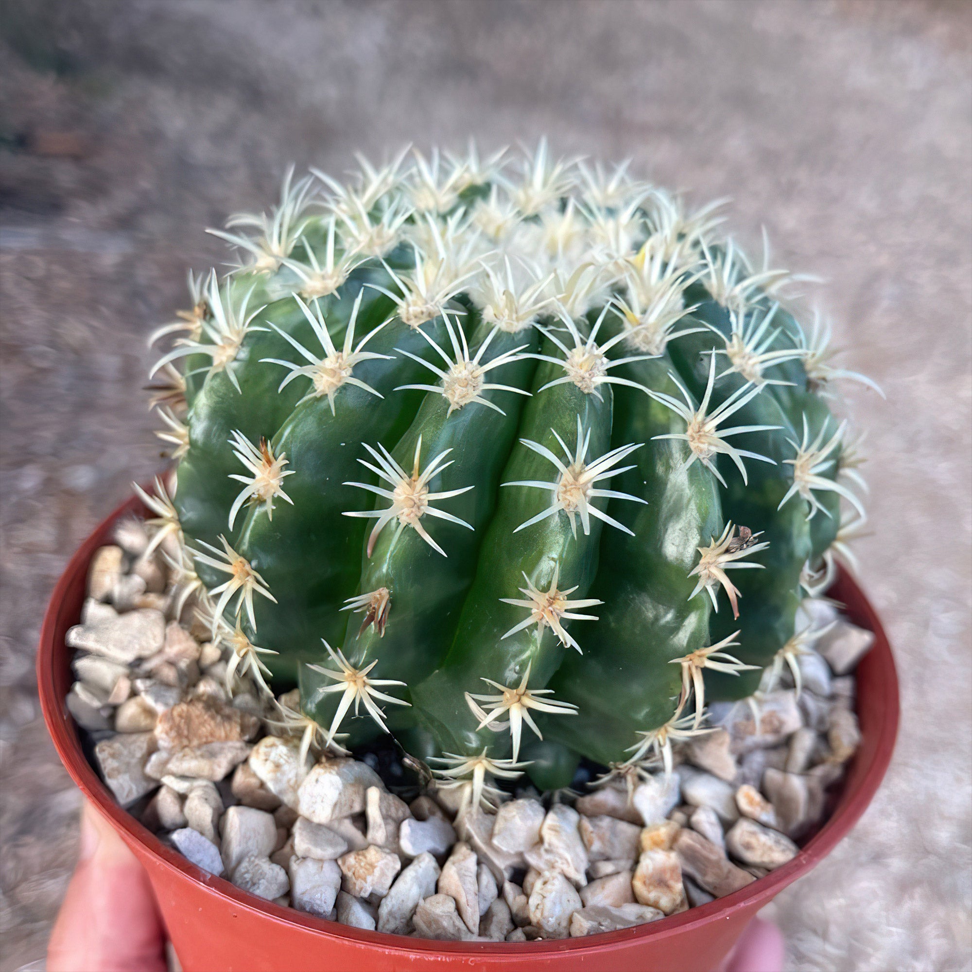 This plant is another variety of the origina With its home in East-Central Mexico, Echinocactus grusonii var. brevispinus is a stunning cactus species. It is a globe-like cactus that usually has a height of 24 to 36 inches. It’s a member of the “Cactaceae” botanical family. You may also find this winter-dormant cactus online by its common name “Barrel Cactus”.