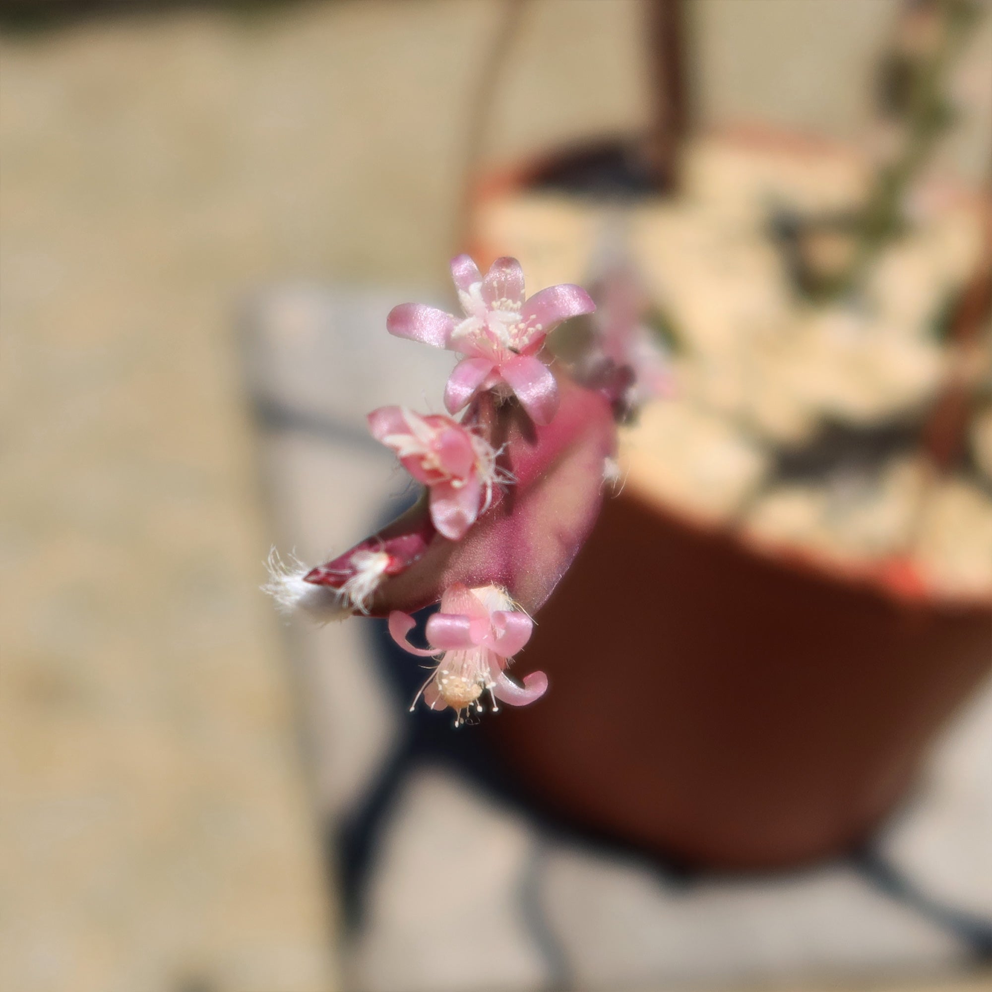 The flowers of the hurricane cactus bloom from late winter to early spring and can range in color from white to cream, yellow, deep purple, and pink flowers (rarely magenta).