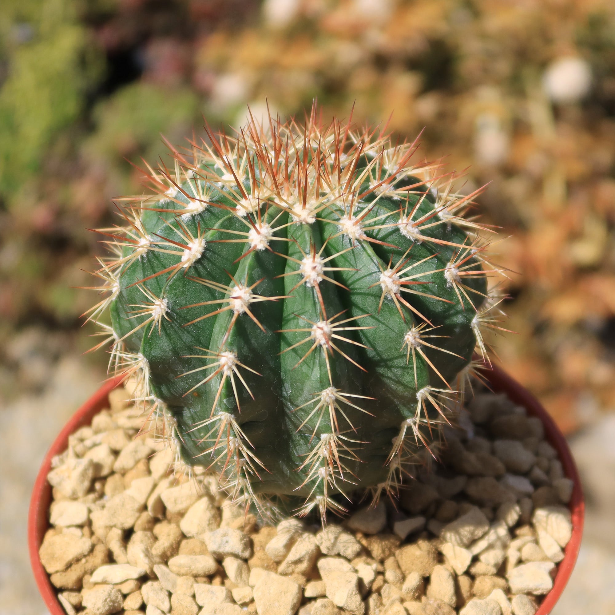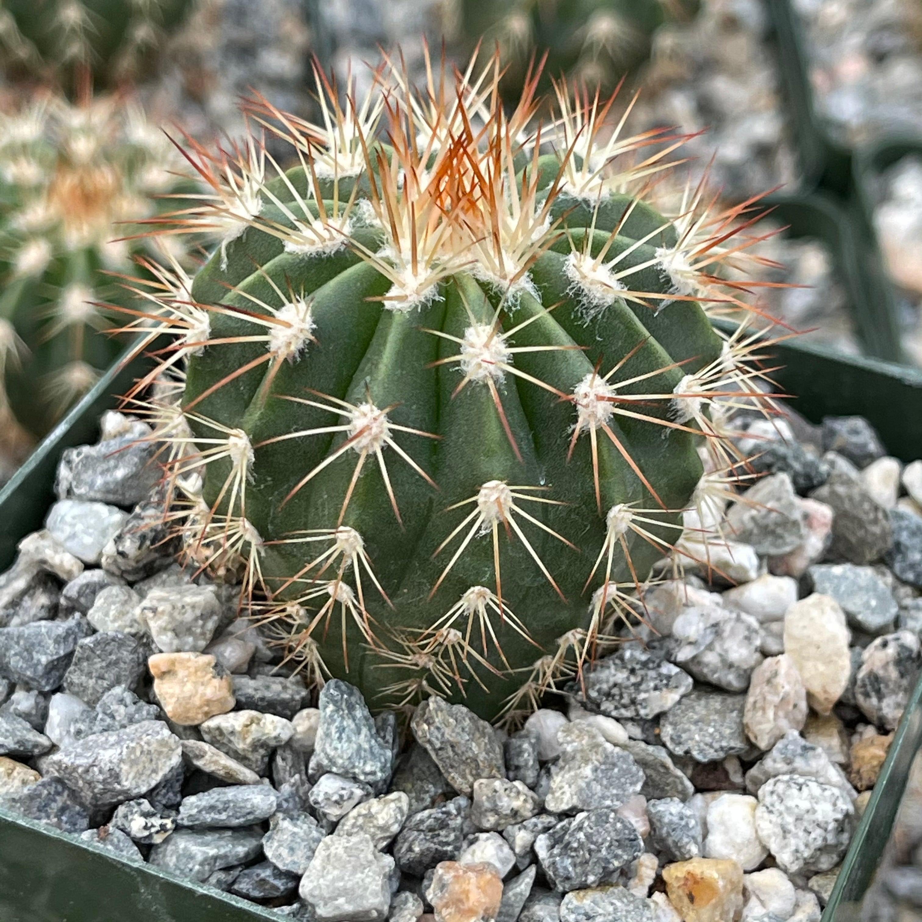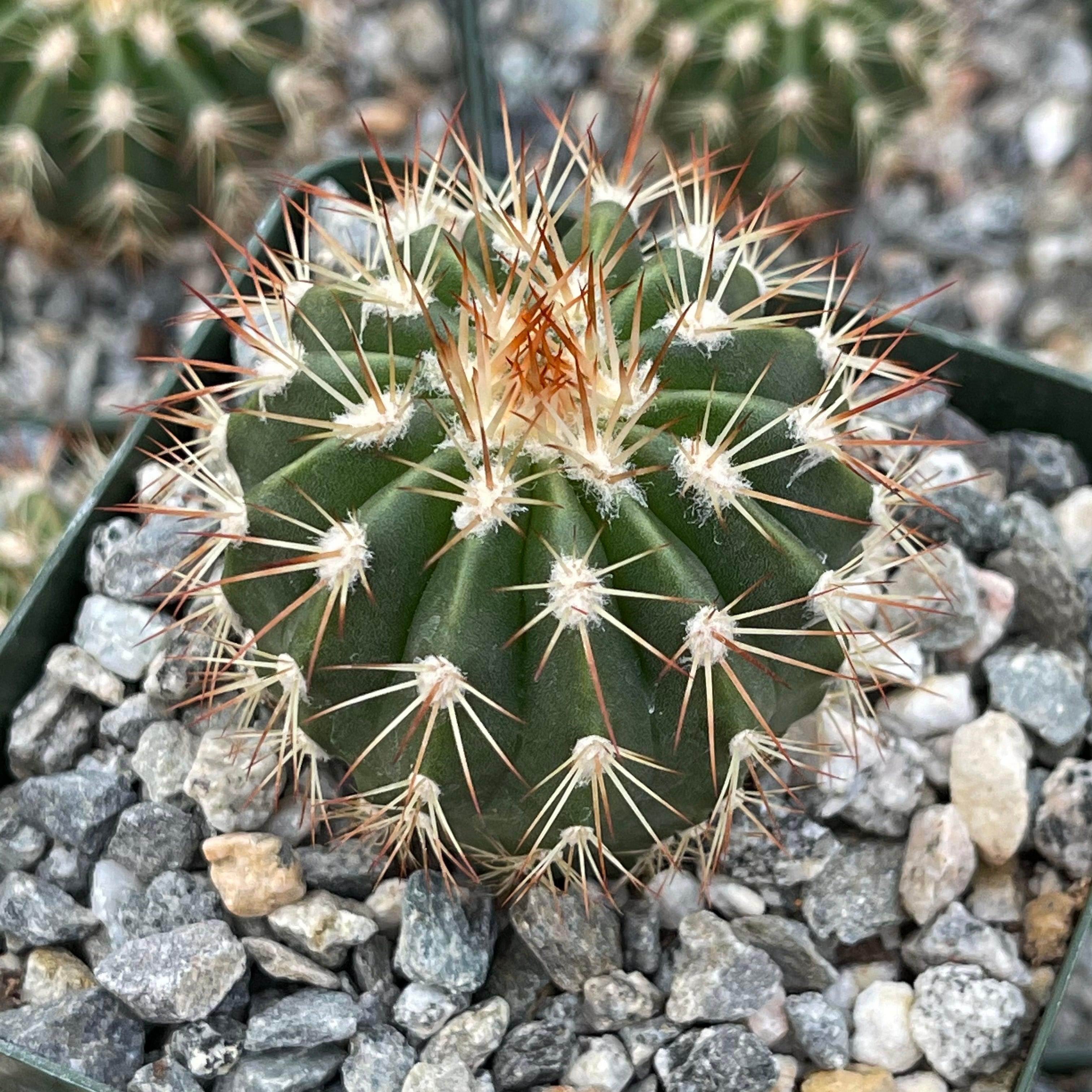 Description: Melocactus guitartii is the the rarest of these Cuban species,. It is about 10 cm broad and 12 cm high, densely armed with long spreading rigid spines.
