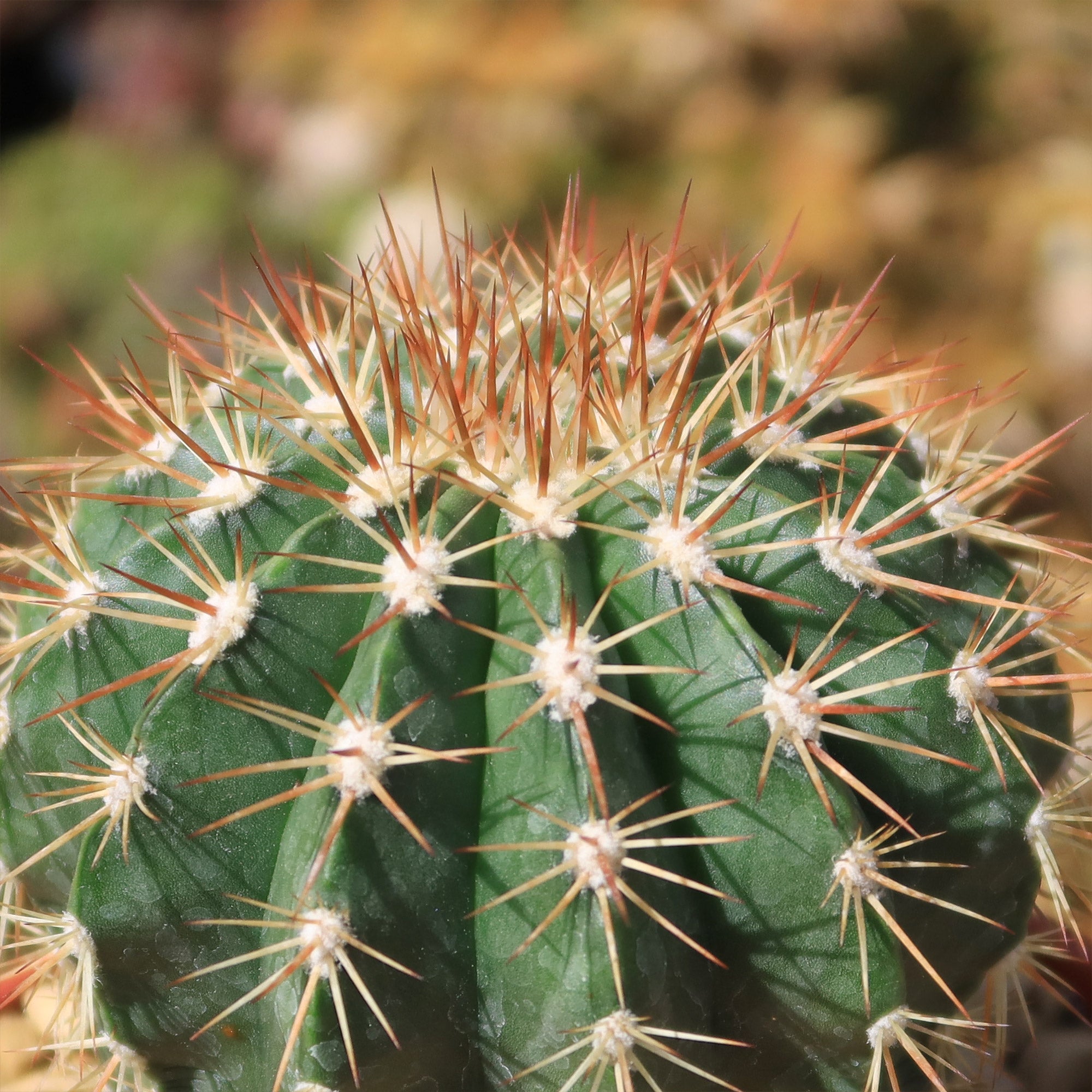 Cephalium: Relatively small 3 to 4 cm tall and 7 to 11 cm in diameter with long reddish-brown bristles.
