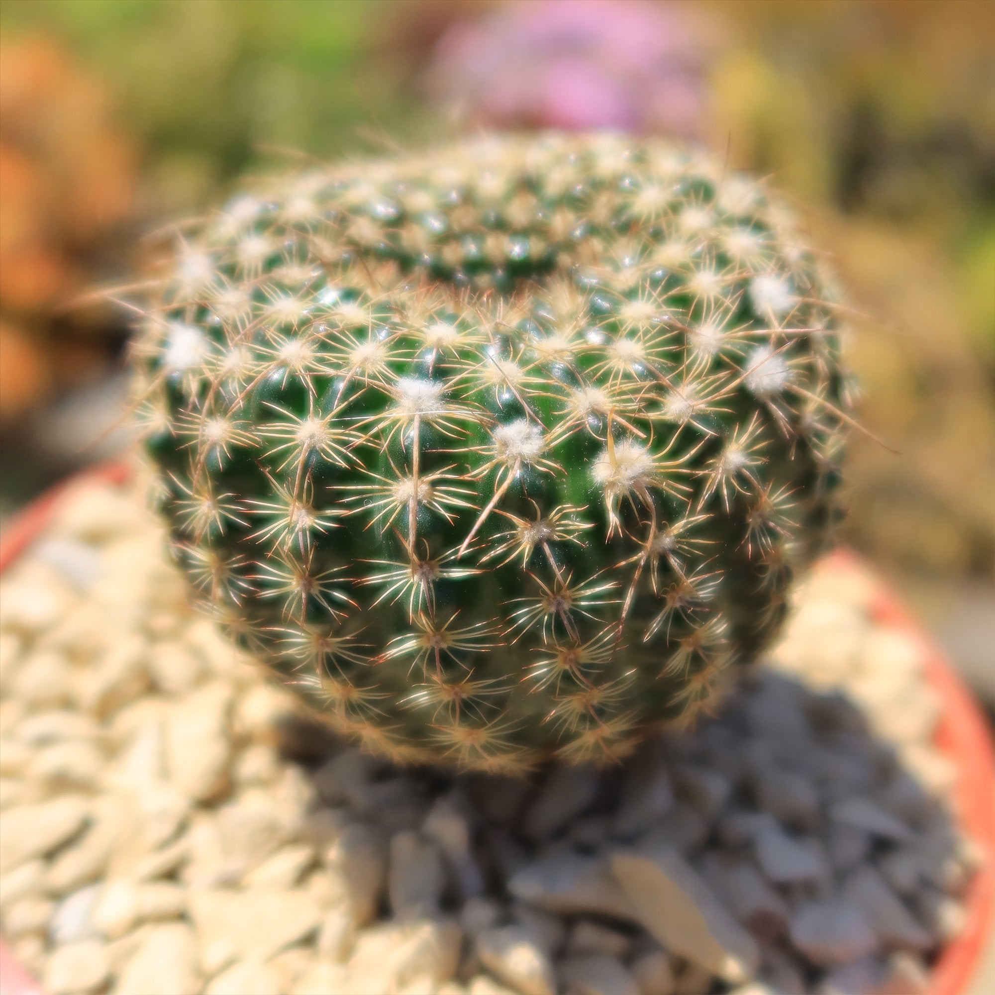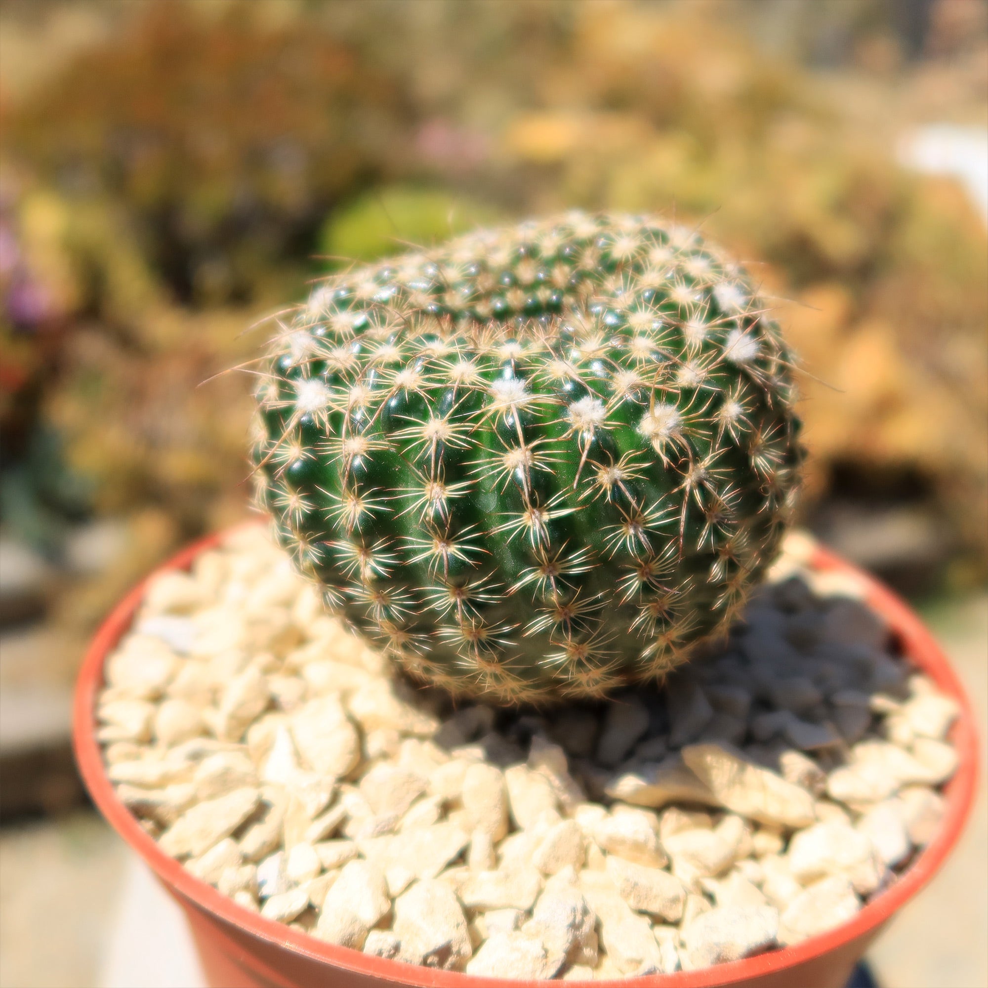 Notocactus is a genus of about 25 species of South American cacti from low elevations of Argentina, Paraguay, Uruguay, and Southern Brazil. They are grown for their spine formations, as well as for their attractive flowers. The genus name comes from the Greek for "cactus from the south". It has now been merged with Parodia. Since the name Parodia was used before Notocactus, it has precedence and all the Notocactus became Parodia.