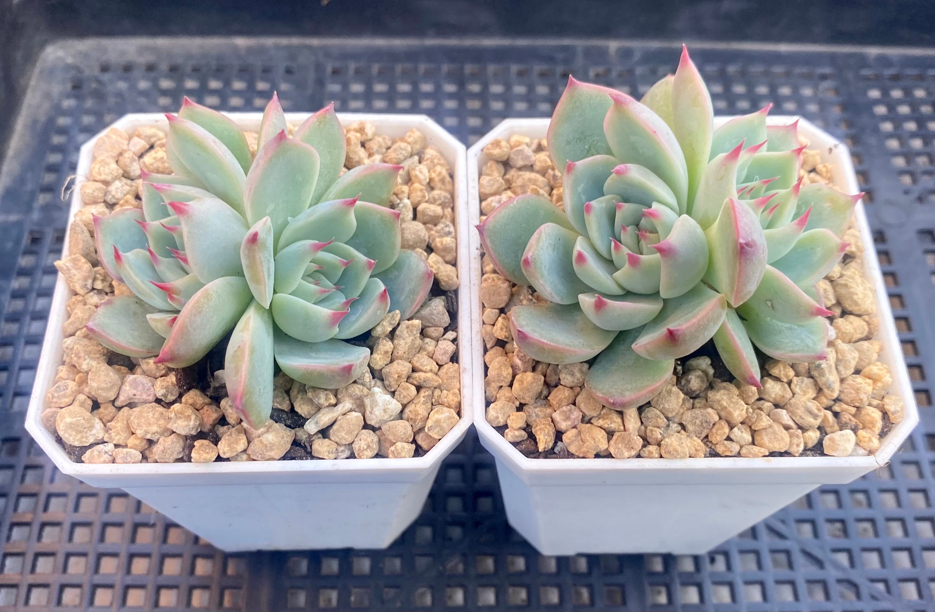 Echeveria chihuahuensis ruby blush is a selected form of Echeveria chihuahuensis. Our mother plant was sourced from Jocelyn Ainsworth. The back of the leave blushes more red than a normal chihuahuensis. Prefers full sun.