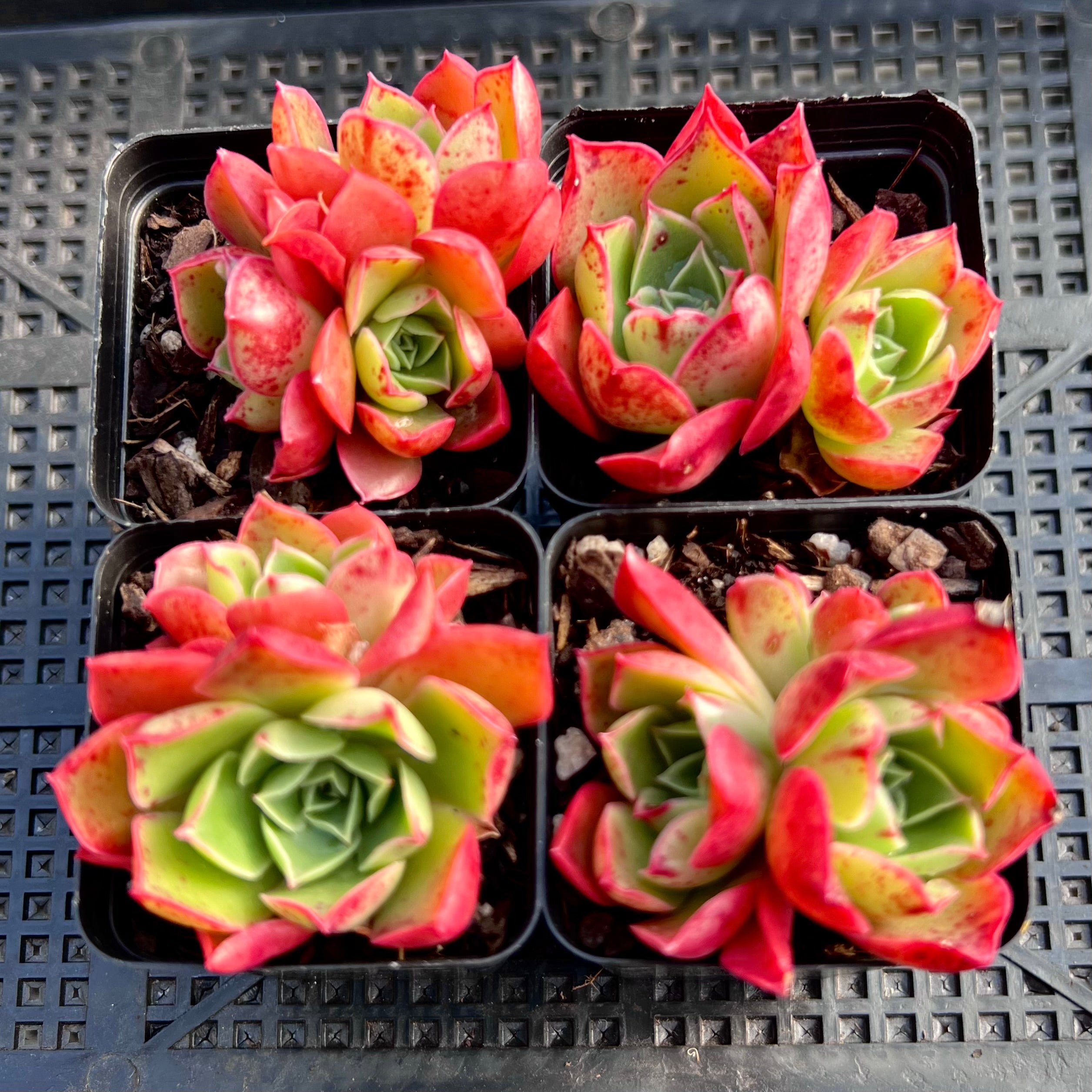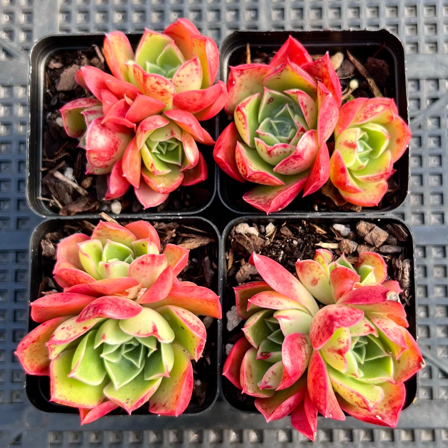 Echeveria obsidian is a longissima hybrid. It has amazing red markings on lime green leaves. It will develop bumps on the leave as the plant goes into stress. It has a similar look to Echeveria longissima with bumps or longissima x raindrops. But obsidian has shorter leaves. Prefers full sun.