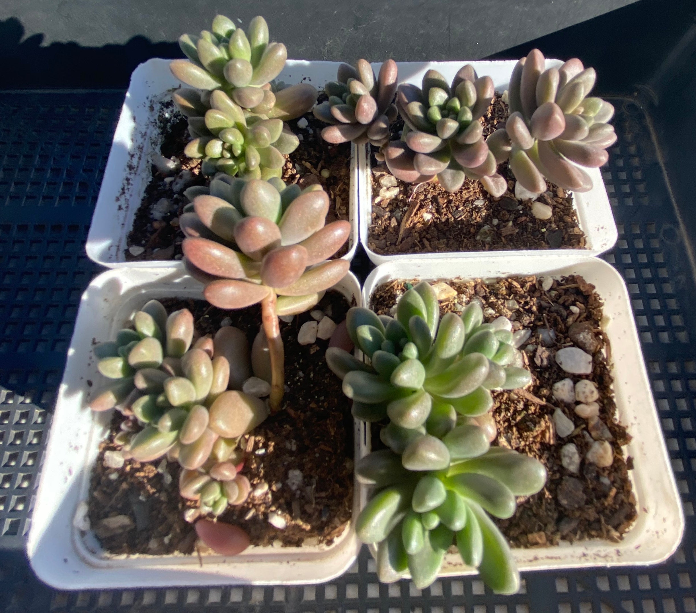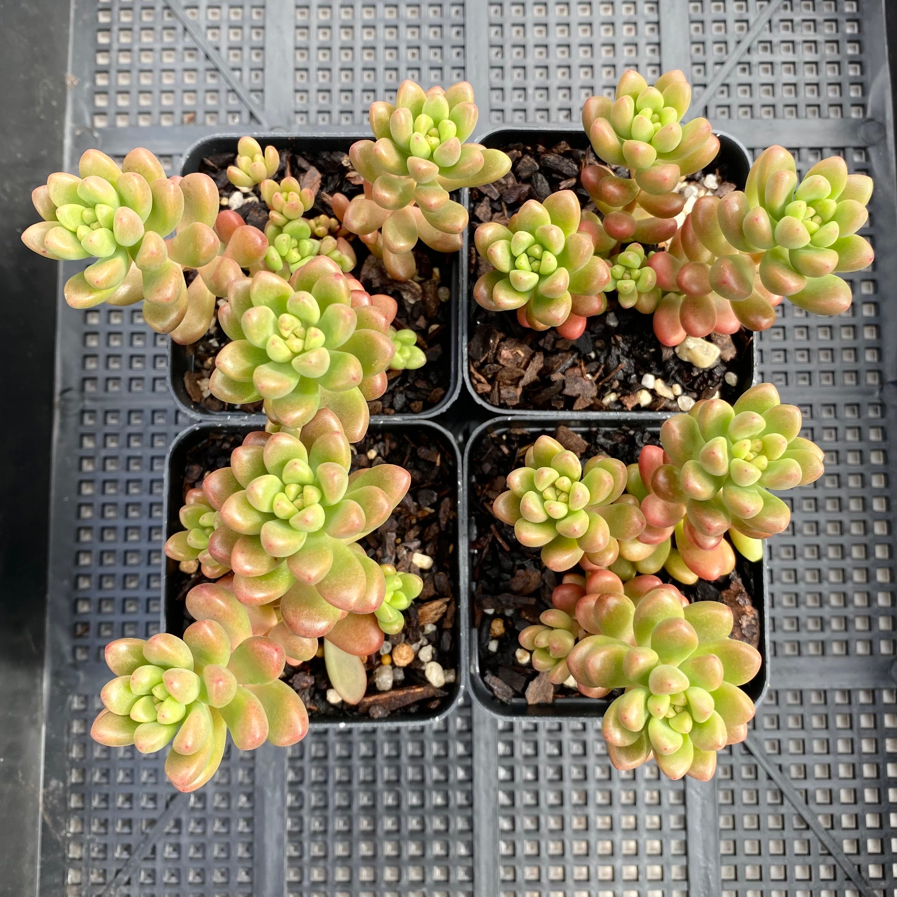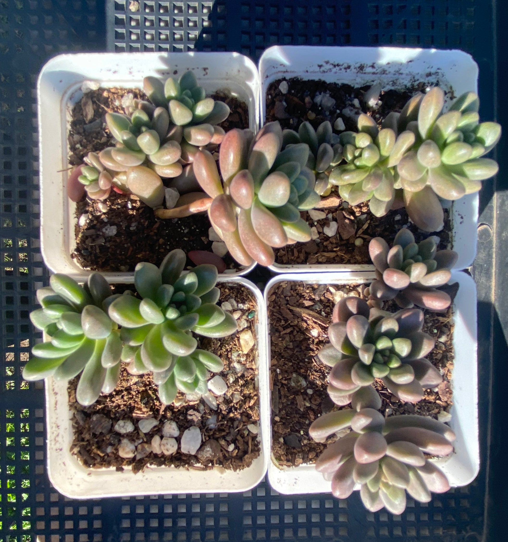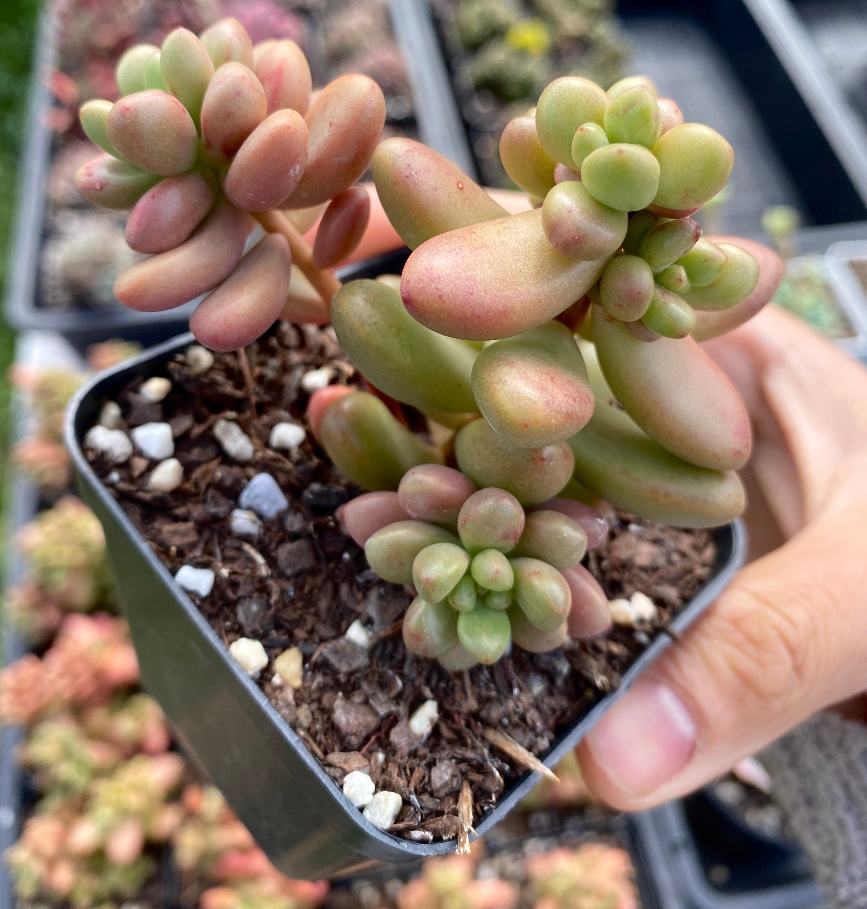 赤豆白石是一个小型的景天品种,叶片圆润,平时为绿色,出状态的时候变棕红。喜全阳,容易群生,很好养护。