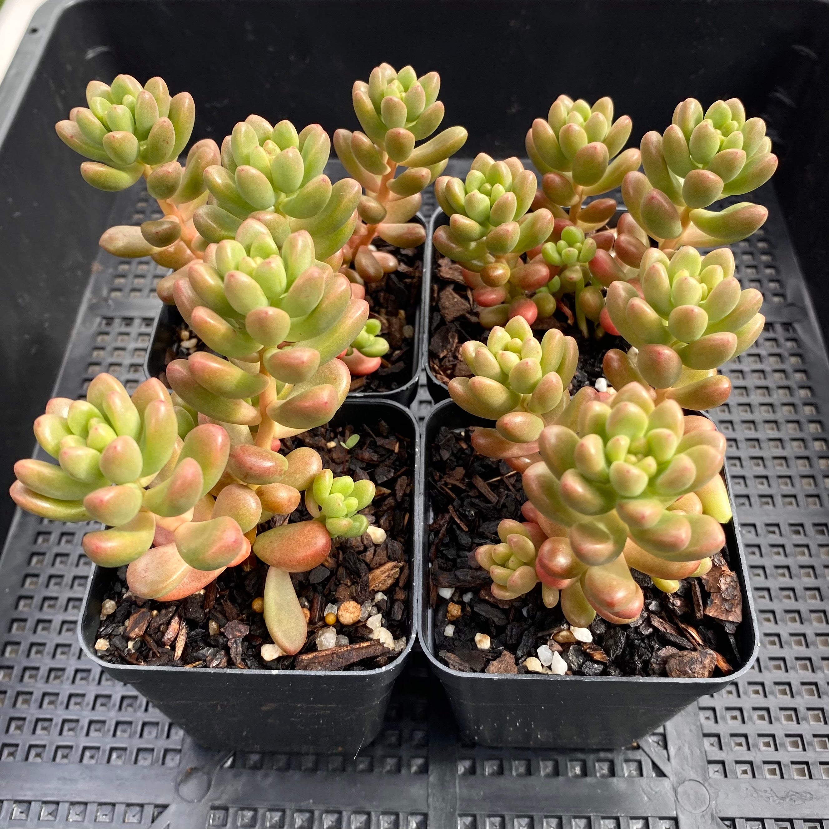 Sedum white stonecrop is dainty small jellybean looking plant. The leaves are green and stress to a deep reddish brown garnet colour. Prefers full sun, easy to grow and offsets freely.